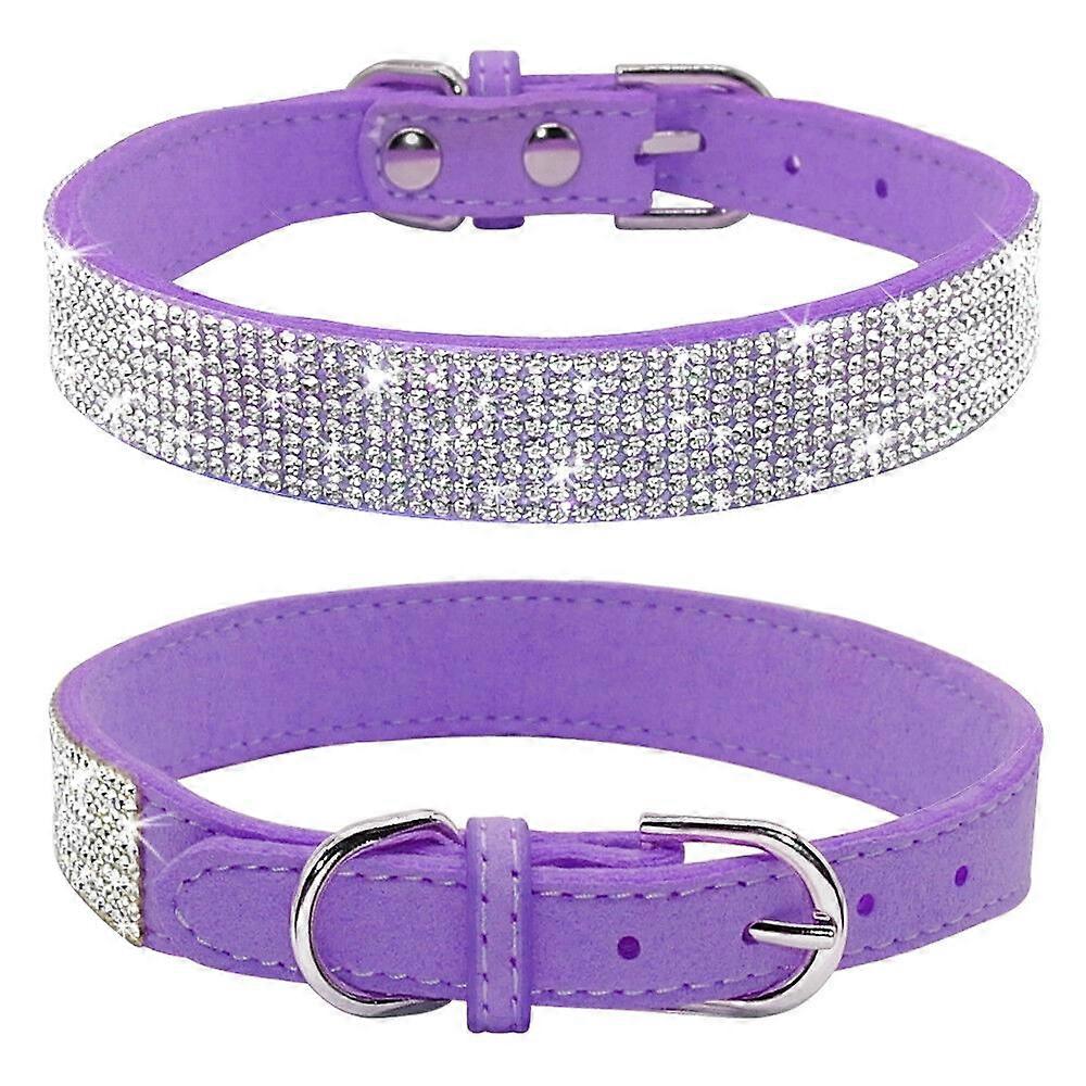 Rhinestone Diamante Dog Collar Soft Suede Small Pet Cat Puppy Show Necklace XS-M