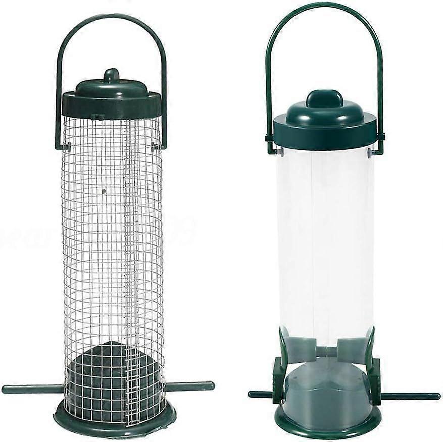 Bird Feeder Tube Style 2pcs-Plastic Bird Feeders for Outside Hanging Wild Bird Seed Feeder Outdoor Garden Decoration(Mesh Feeder+Clear Feeder