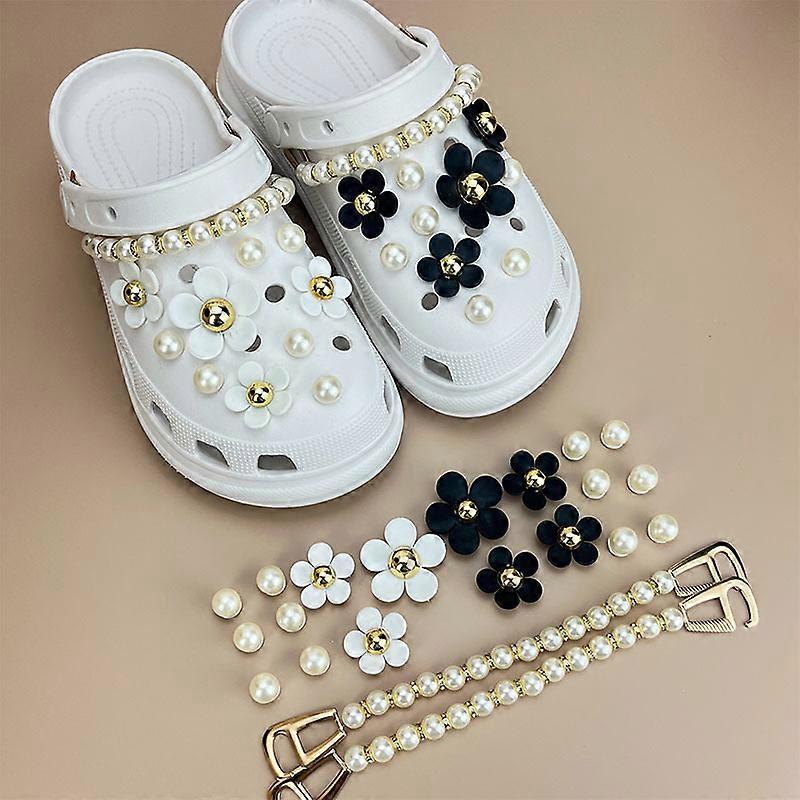 Dww-Set of 21 pieces of holey shoes DIY accessories Colorful garden shoes Flower shoe buckle Detachable beaded chain