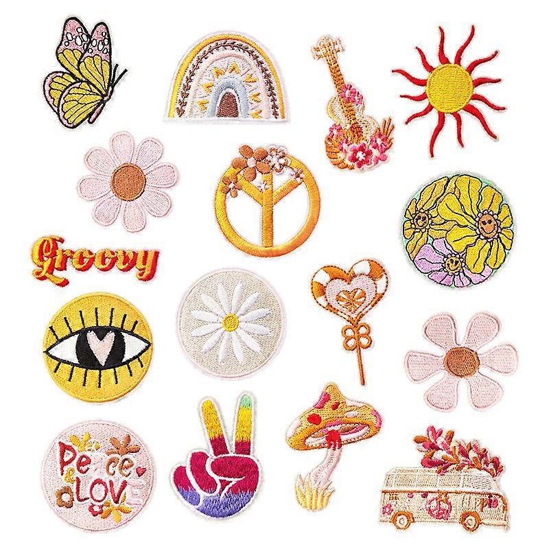 Dww-16pcs Iron-on Embroidery Patches, Iron-on Embroidery Stickers, Sewn-on Patch Stickers for Clothes, Backpacks, Jeans, Hats, Repair and Decoration