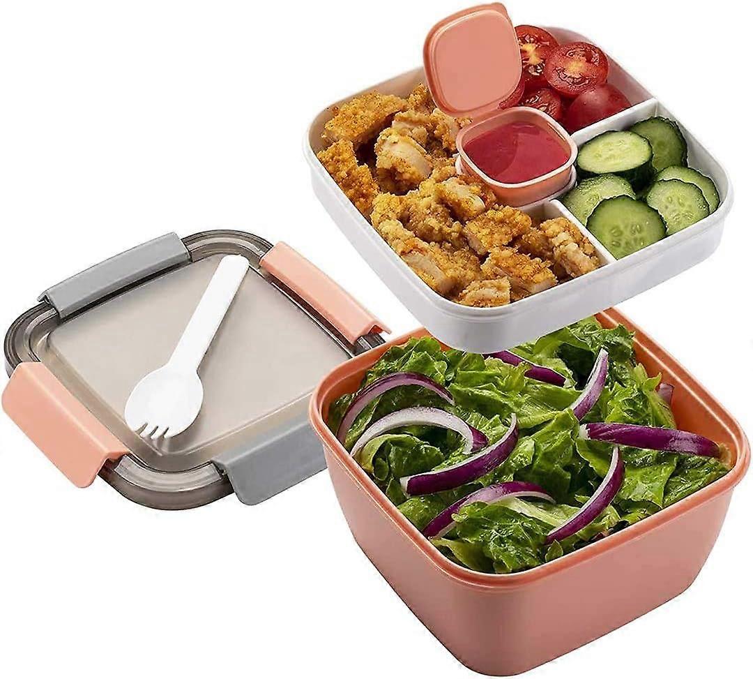 Dww-Lunch Box with Divided Compartment (Pink), Adult/Children's, Durable Bento Lunch Box, Microwaveable Salad Lunch Box for Travel, School/Work/Picnic