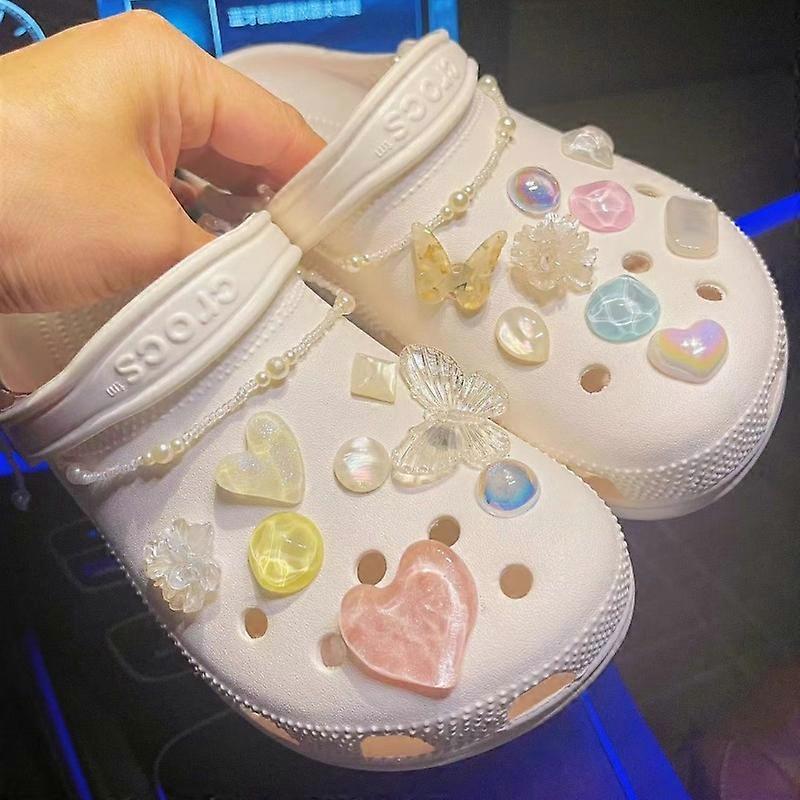 Dww-Set of 19 pieces of holey shoe accessories, DIY accessories, colorful garden shoes, flower shoe buckle, detachable beaded chain