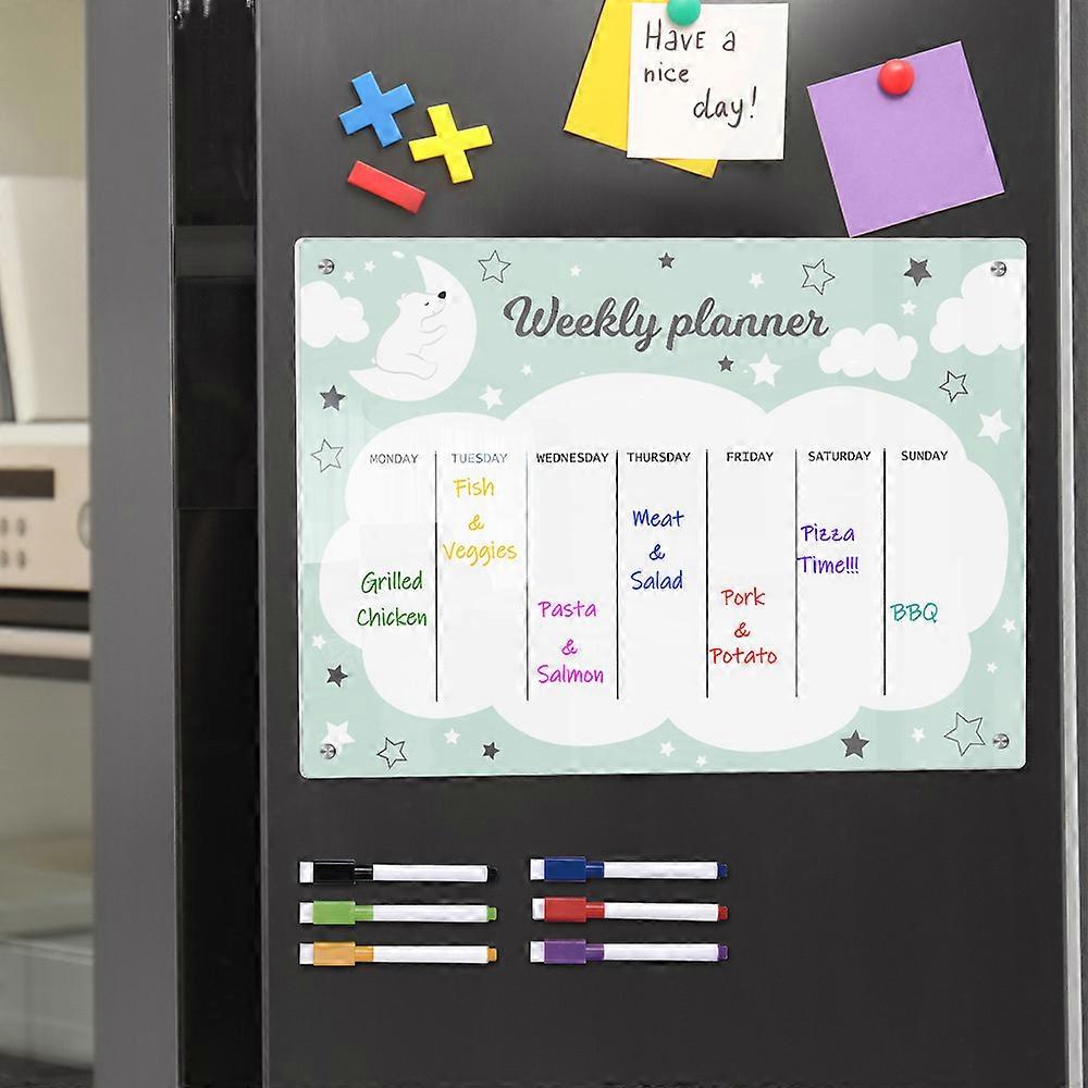 Dww-Moon Green Star Magnetic Absorbent Weekly Planner Pad (Large Size), with Pen, Clear Erasable Acrylic Writing Board, and Reminder Pad