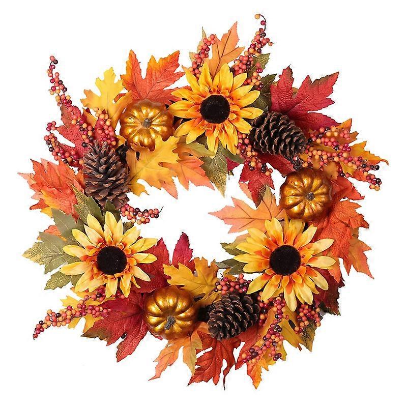 Dww-45cm-Autumn Artificial Sunflower Wreath Simulation Maple Leaf Pumpkin Sunflower Door Hanging Harvest Festival Rattan Ring