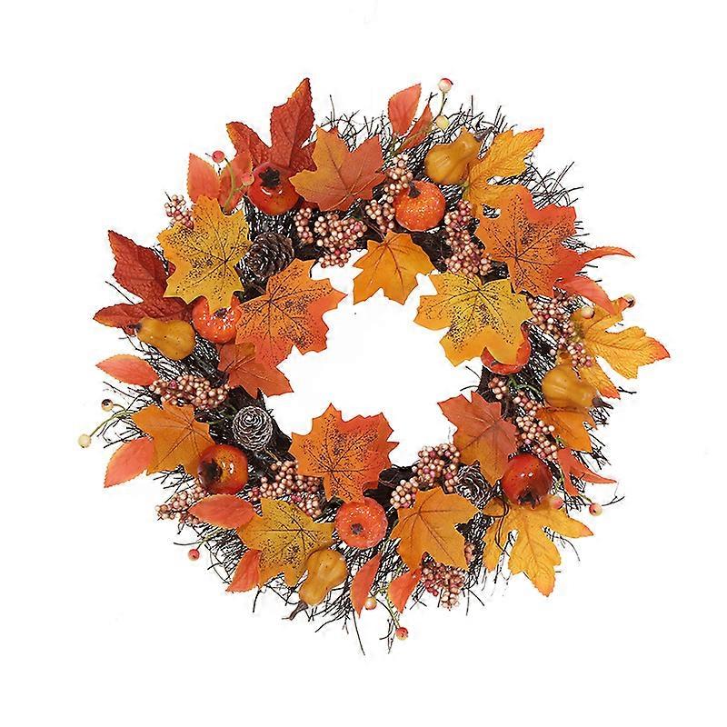 Dww-40cm-Autumn Wreath Simulation Maple Leaf Door Hanging Harvest Festival Rattan Wreath Thanksgiving Wreath