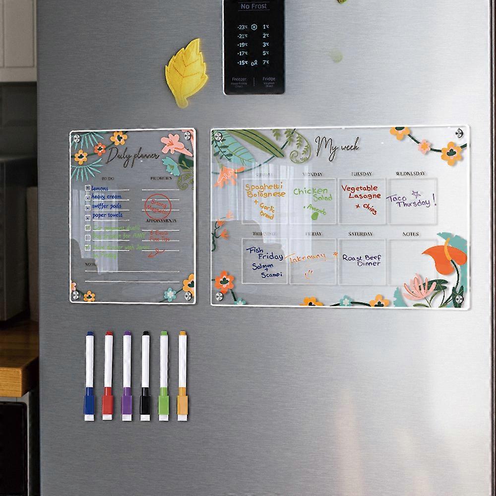 Dww-Mini erasable acrylic weekly planner - Botanical, A3+A4 size, easily erasable, contains 6 markers
