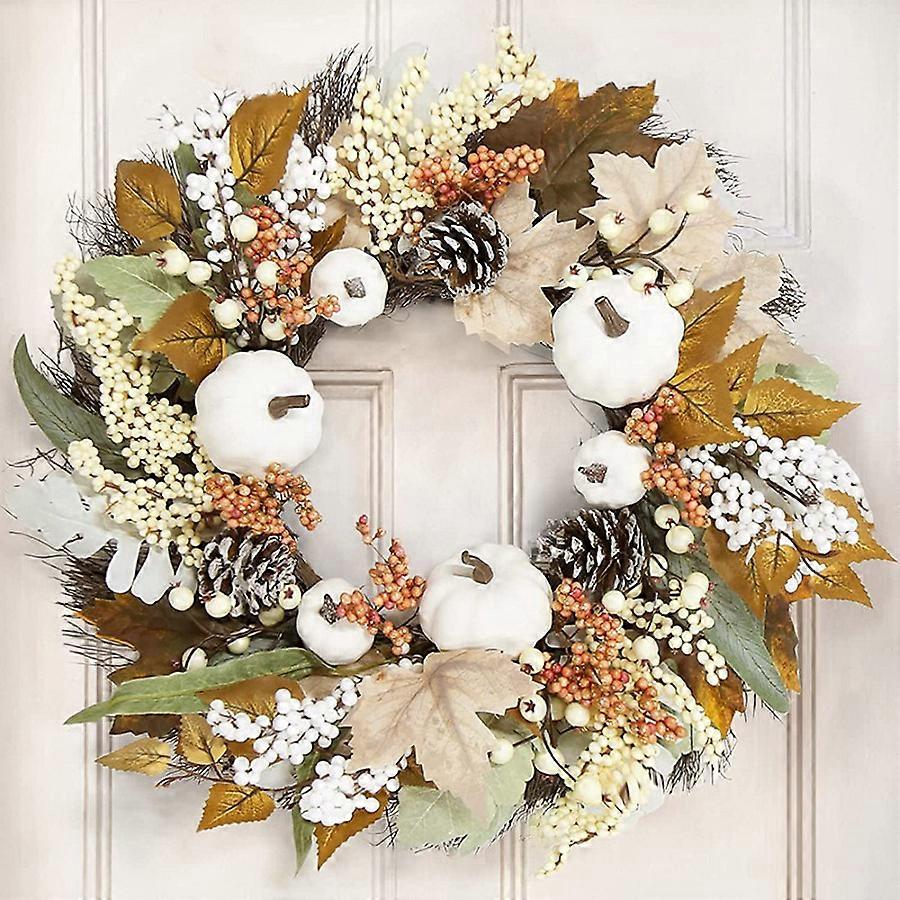 Dww-45cm-Autumn Colors Thanksgiving Cotton Maple Leaf Pinecone Wreath Wreath White Maple Leaf Decorations Wall Hanging