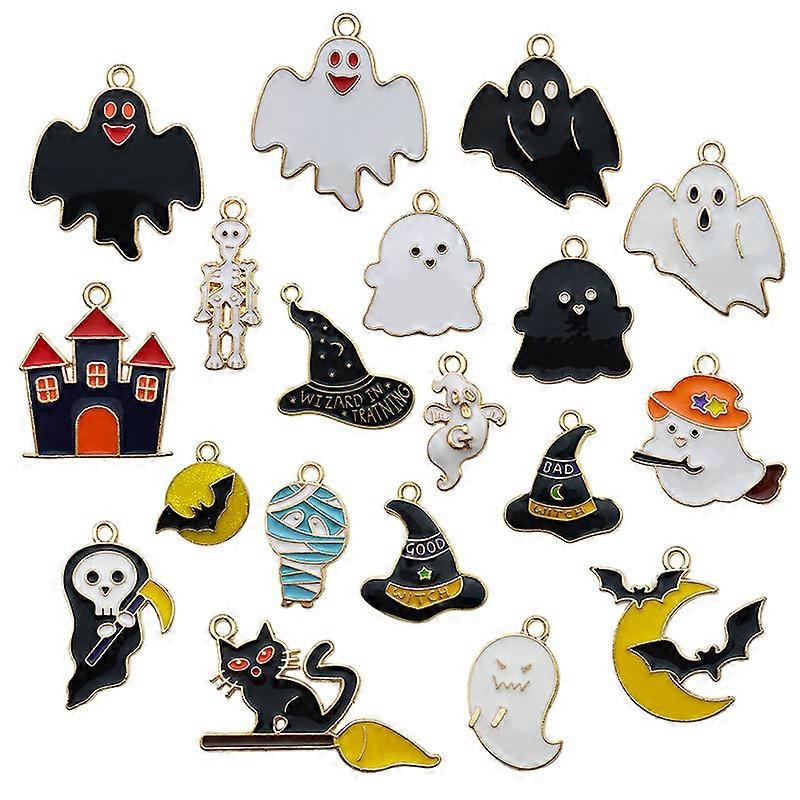 Dww-[Random Style] 19 drops of Halloween ghost broomstick bat assistant hat creative DIY bracelet necklace small pendant