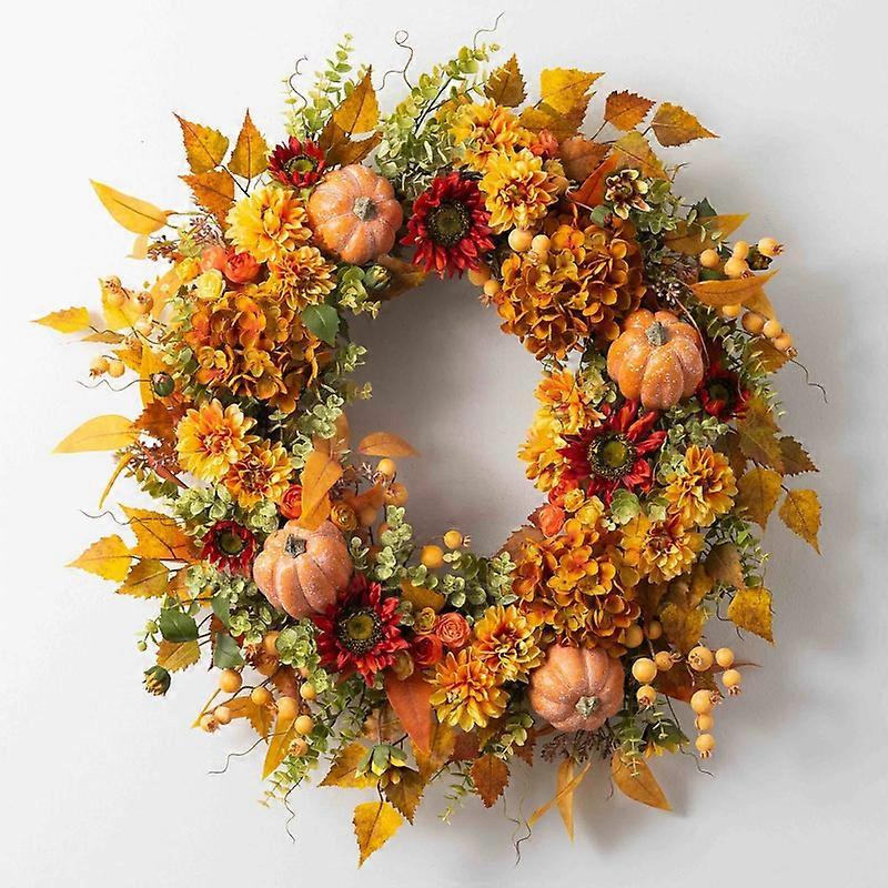 Dww-45cm-Autumn Colors Thanksgiving Hydrangea Maple Leaf Pine Cone Wreath Maple Leaf Sunflower Door Hanging