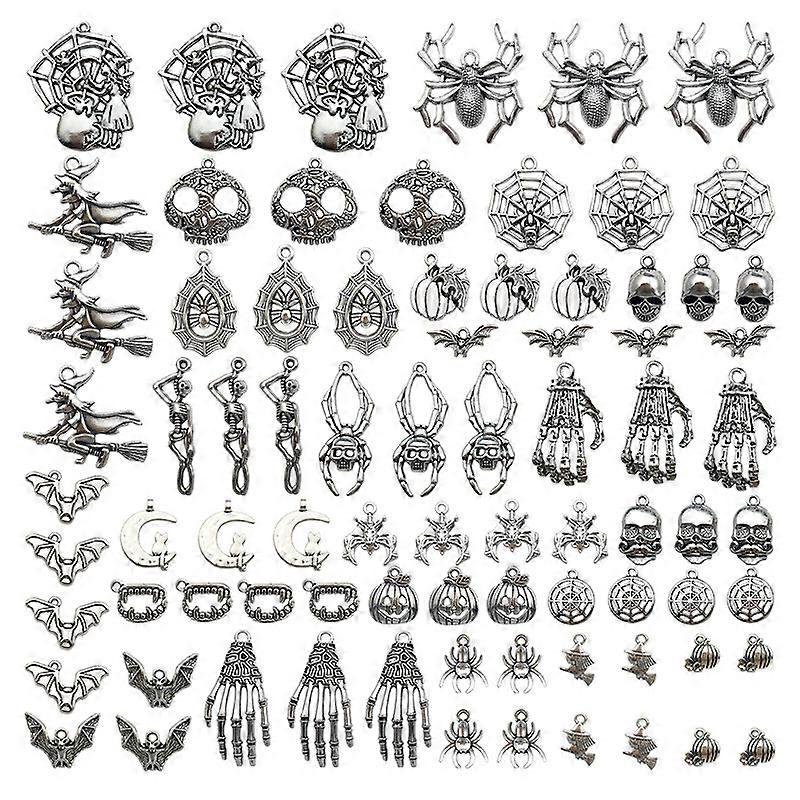 Dww-[Silver] 80 Pieces Halloween Accessories (Mixed) Pumpkin Skull Bat Pendant DIY Jewelry Accessories Earrings Hardware