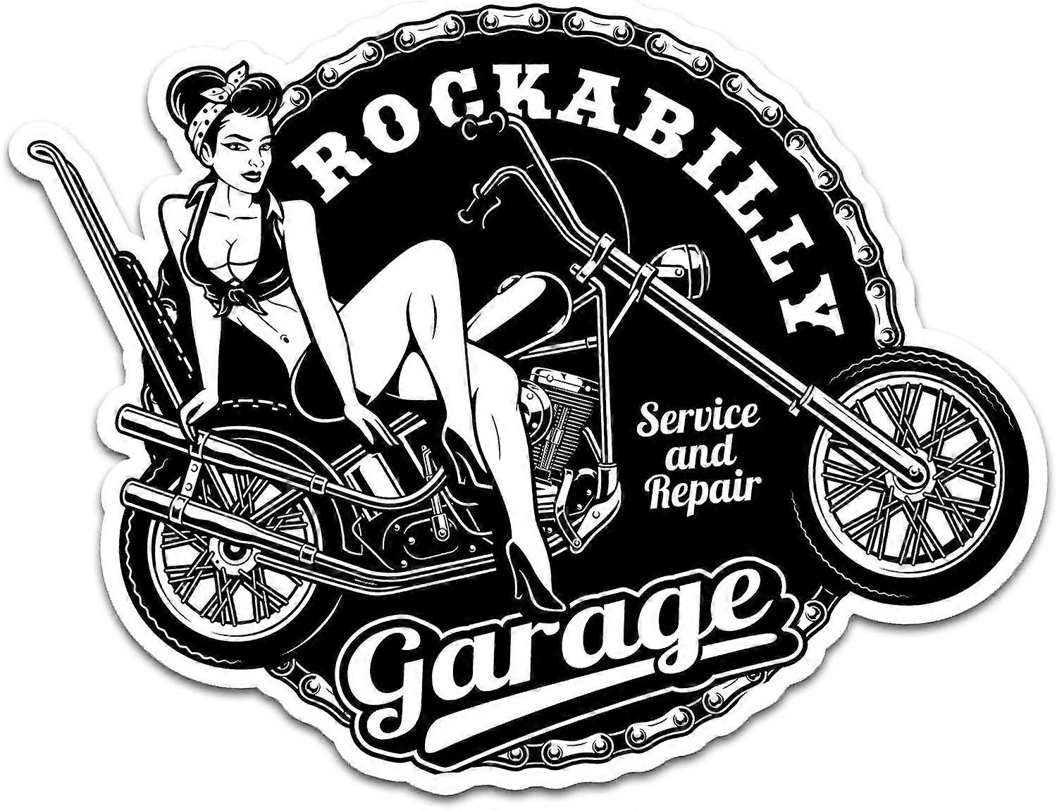 Dww-[Black and White] 2 Pieces of 13cm Retro Motorcycle Stickers Sexy Girl Motorcycle Stickers