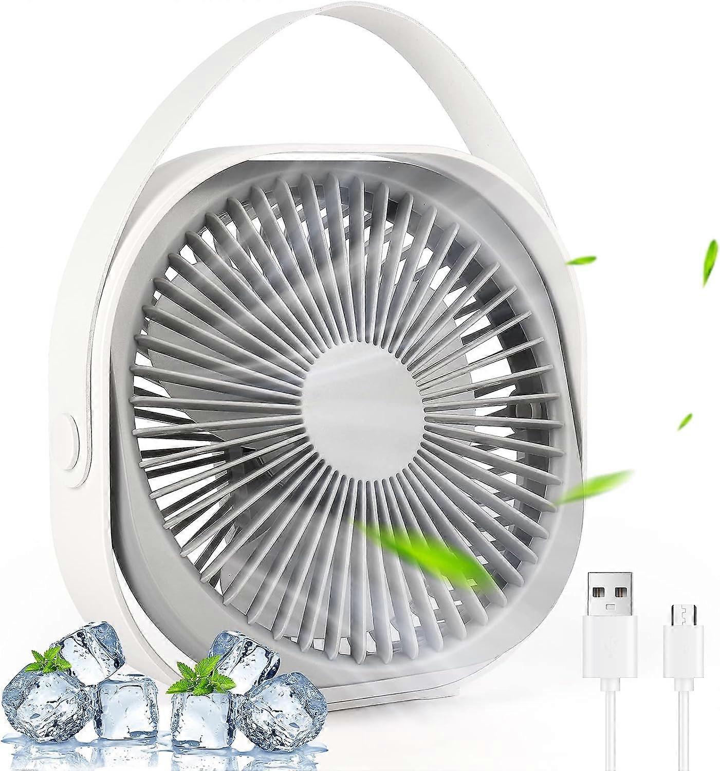 Glovivos USB Desk Fan, 3-Speed White Desk Fan, 360 Adjustable Silent Fan, Powerful Mini Fan for Office, Home, Bedroom, Car, Camping