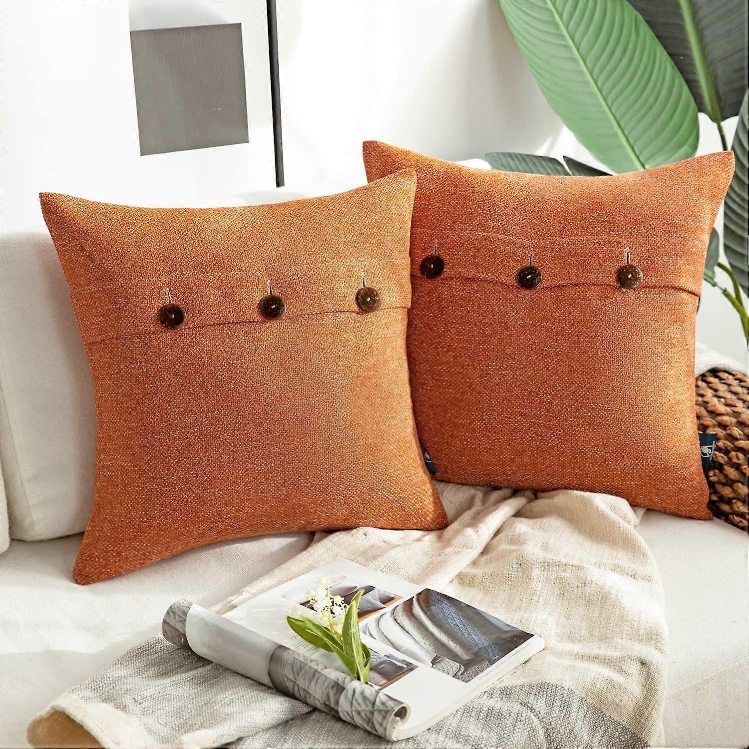 Farmhouse Throw Decorative Pillow Cover Triple Button Vintage Linen Geometric-Pattern Halloween, Orange, 18 x 18 inches, Pack of 2