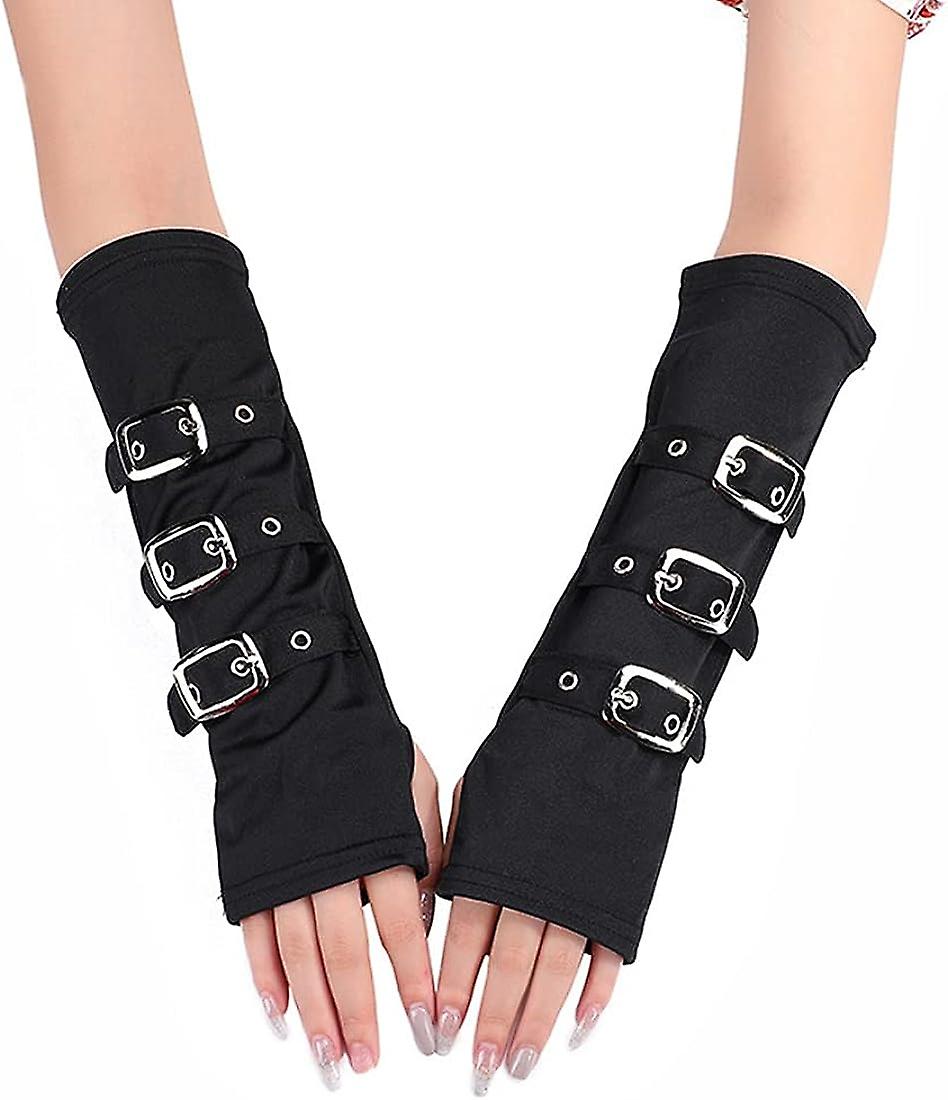Black Punk Gloves For Women Men Transgender, Classic Gothic Mid-length Buckles Gloves Wristband Hiphop Band Party Gloves Fancy Dress Costume Dance Fin