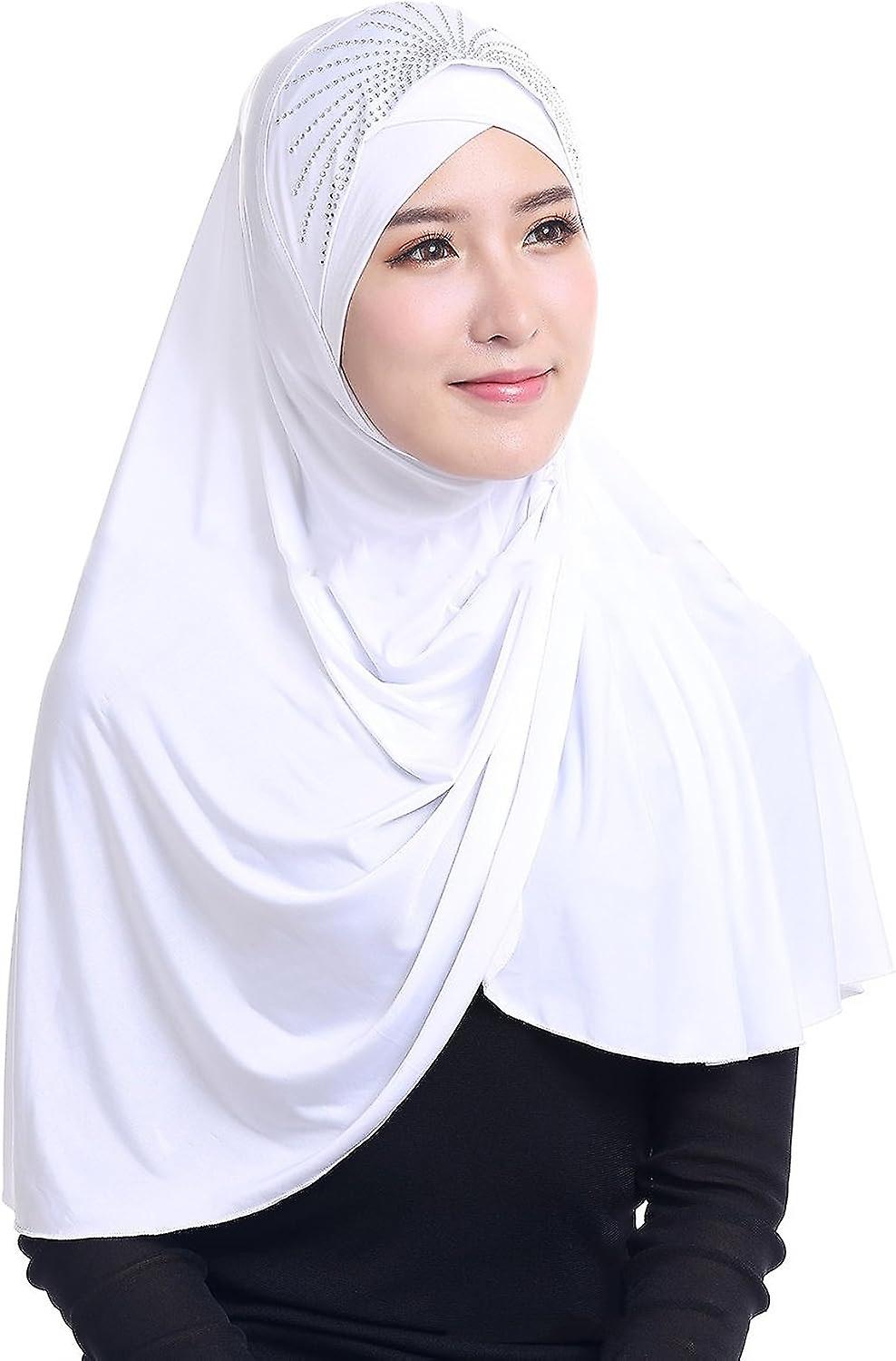 Ready-styled Muslim Hijab Warp With Artificial Rhinestone Turban Head Wraps For Women Large Head Scarf
