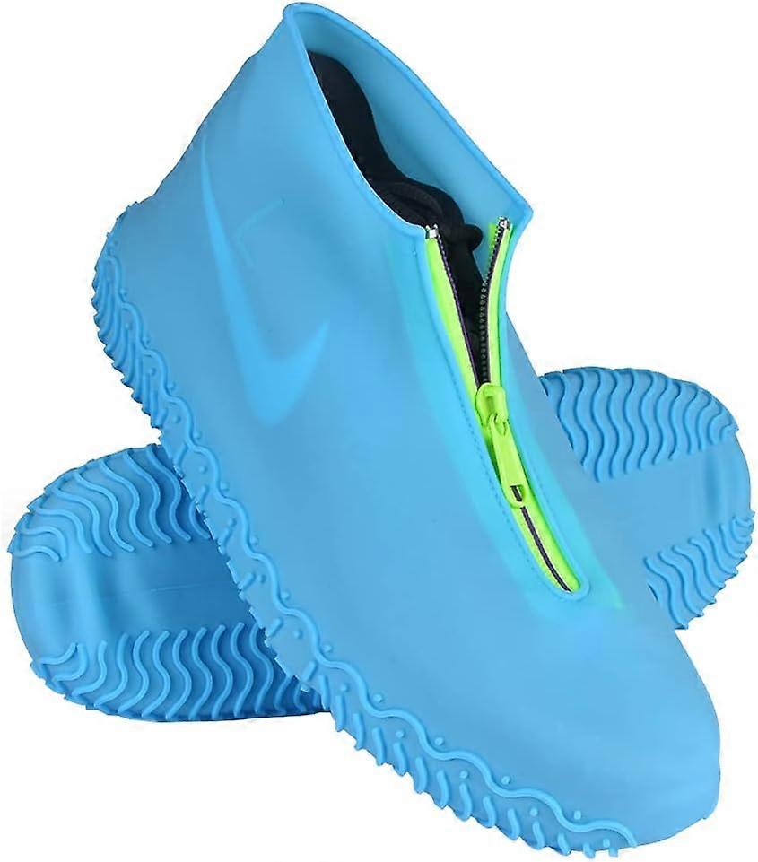 Dww Waterproof Shoe Covers (Blue-XL), Reusable Silicone Shoe Covers with Reinforced Non-Slip Sole for Rainy and Snowy Days for Men and Women