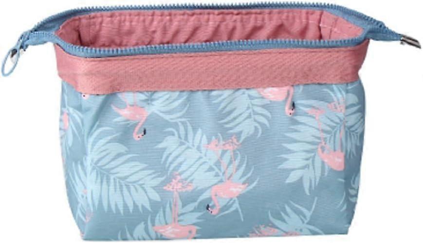 Dww-[Flamingo, 18 13 9 cm] Small, compact, foldable toiletry bag. Japanese-style floral cosmetic bag.