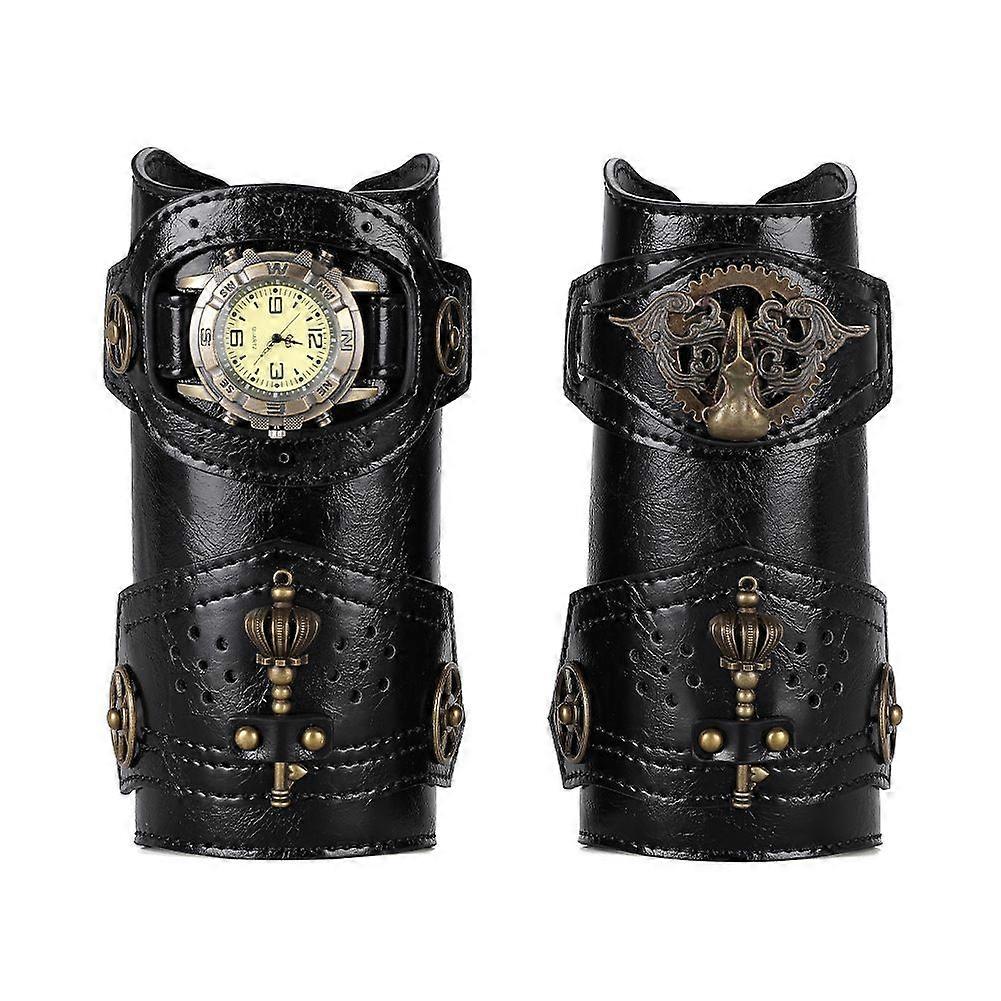 2PCS Unisex Leather Gauntlet Bracelet Medieval Archery Wide Bracers Watch Arm Wrist Guard Halloween Costume Home Accessories
