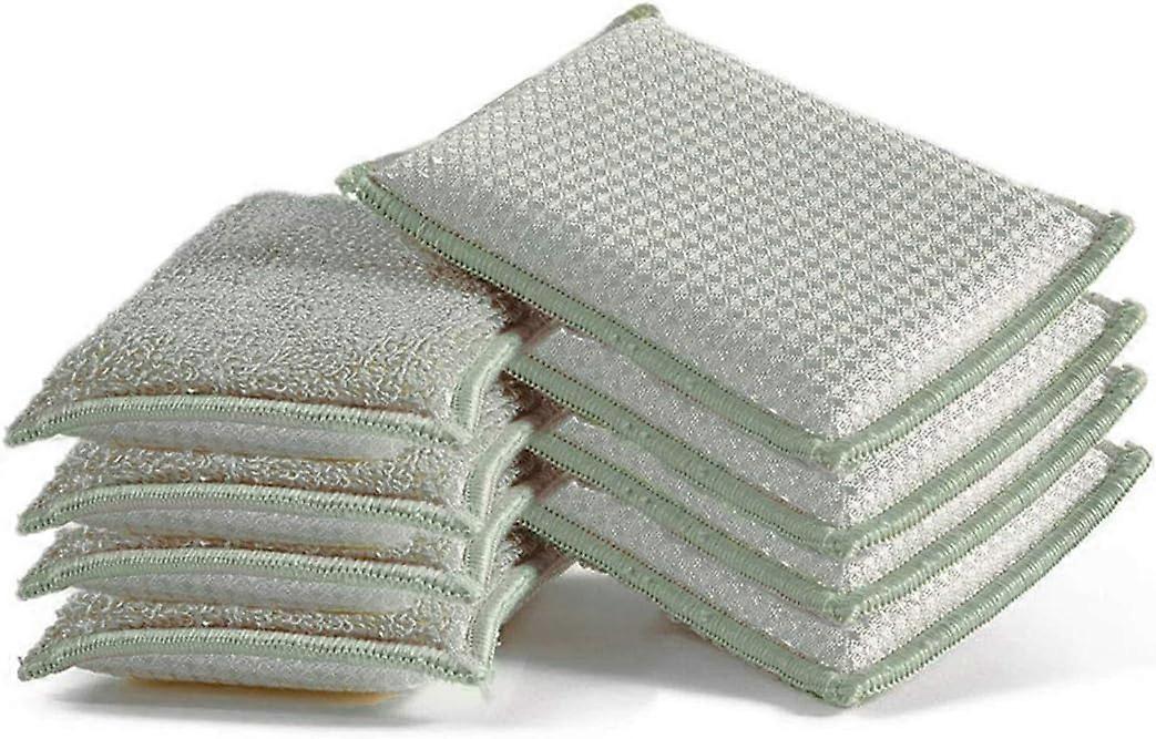 Dww-6pcs (Green) Antibacterial Scouring Sponges, Microfiber Pads, Odorless Brush, Ideal for Non-Stick Pans, Frying Pans, Pots with Suction Cup Hook