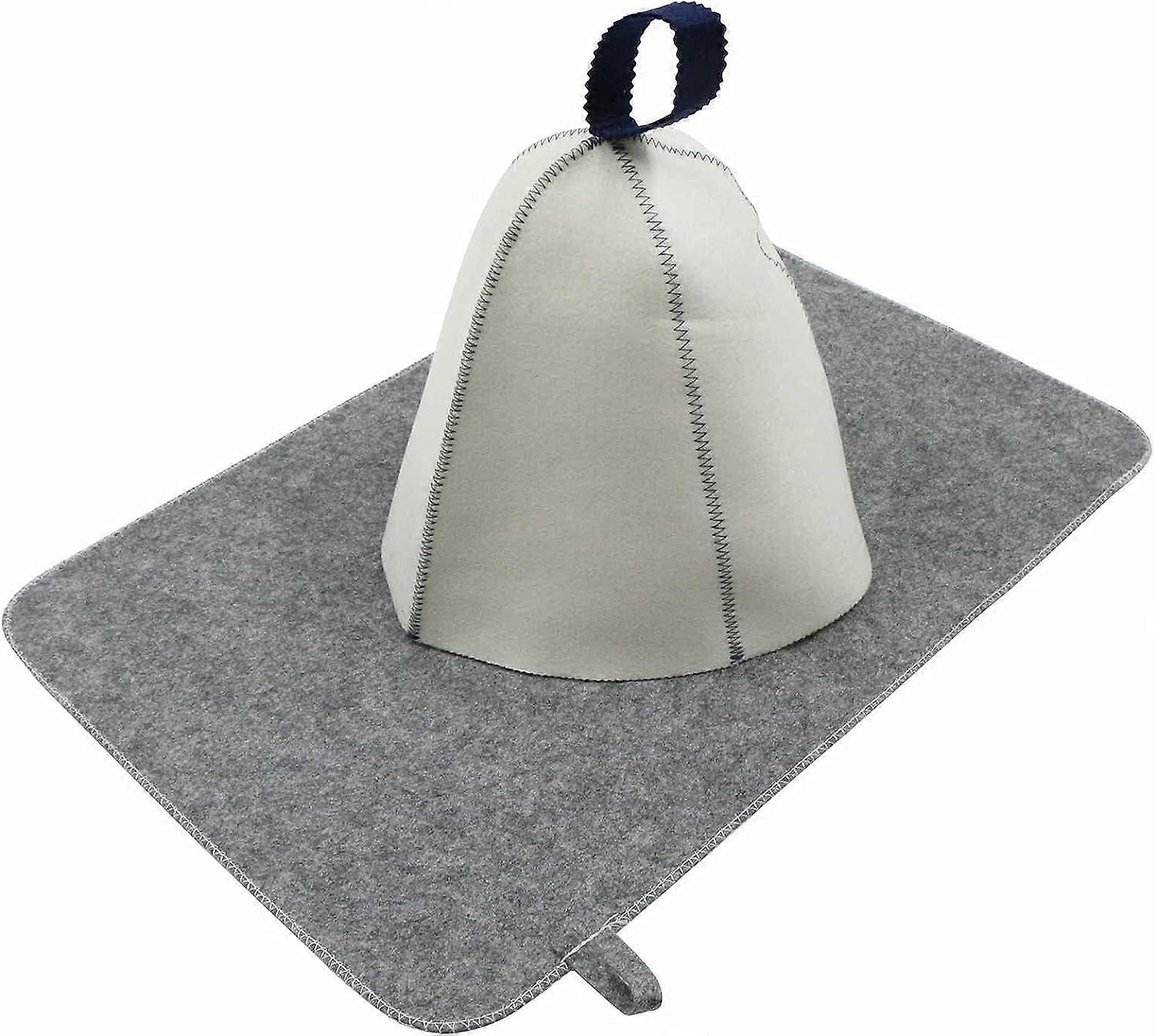 Dww-Natural Textile Sauna Hat - Felt Shower Hat with Hook for Women and Men, Bath Headwear, Most Head Sizes (Hat + Felt Cushion)