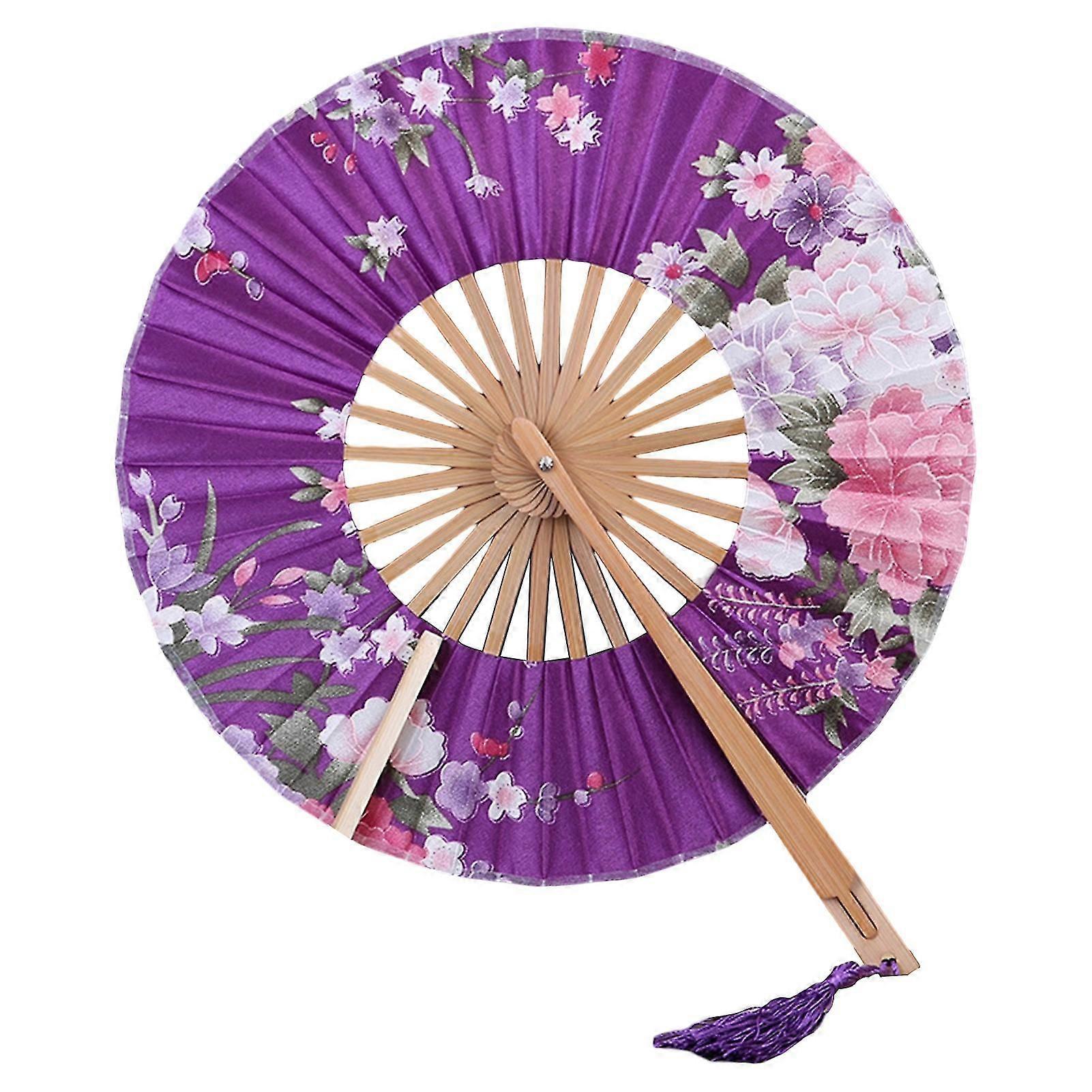 Ancient Classic Tasseled Bamboo Fan with Flower Print for Dress Up Costume and Performance