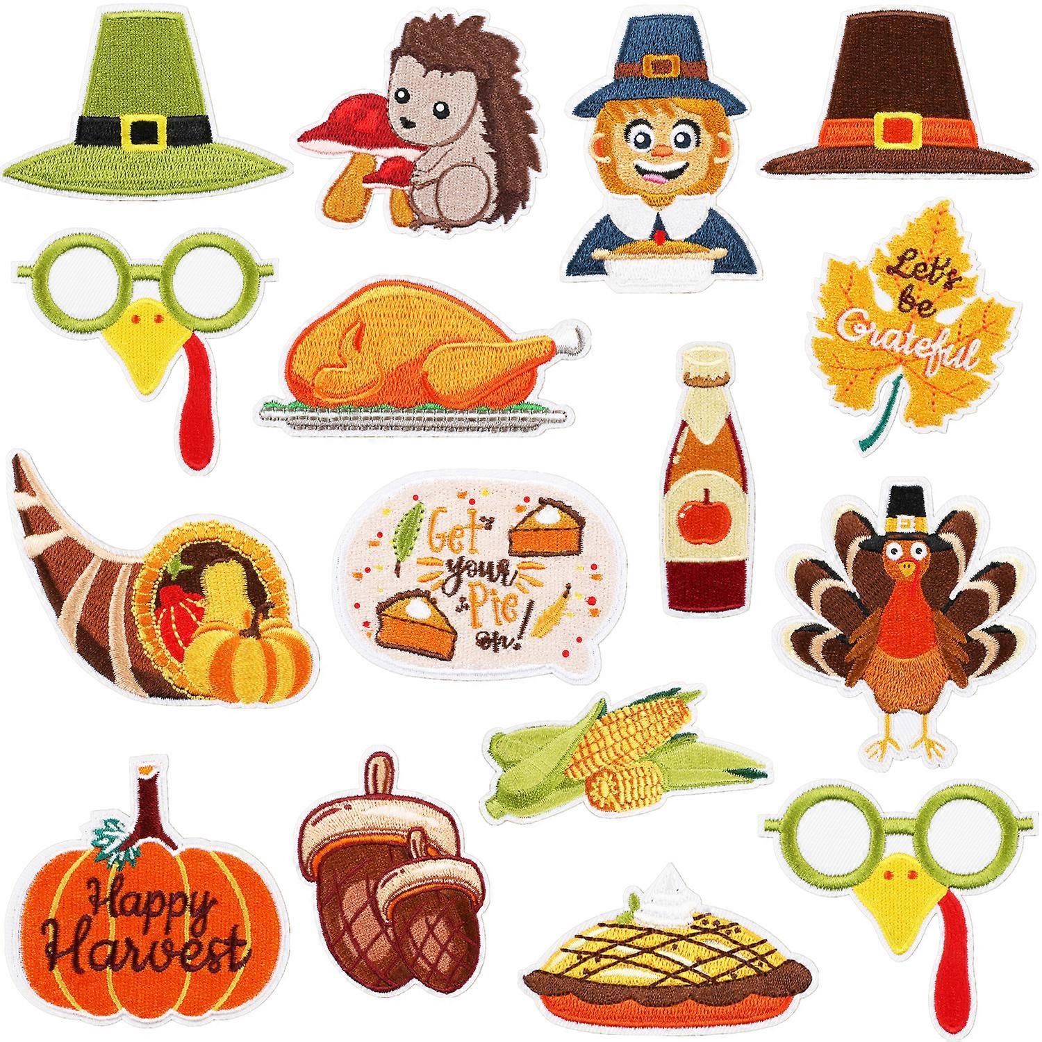 Dww-16 Embroidered Fabric Stickers Thanksgiving Autumn Harvest Pumpkin Seeds Theme Patches Corn Embroidery Computer Stickers