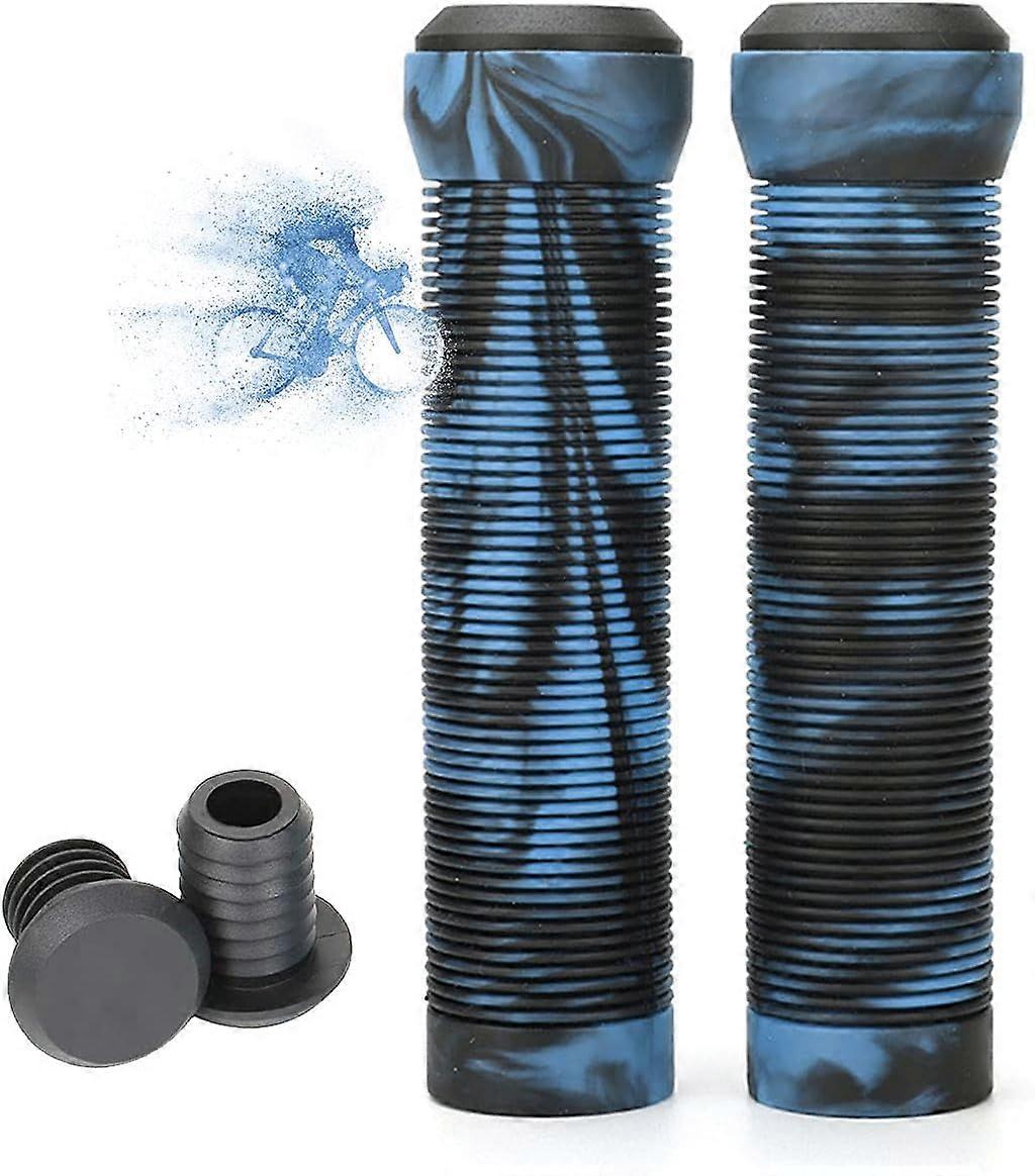 Dww-2 Pieces Rubber MTB Bike Grips (Blue), Bicycle Handlebar Protectors, Soft, Non-Slip, Ergonomic, with End Caps - for Mountain/Road/MTB Bikes