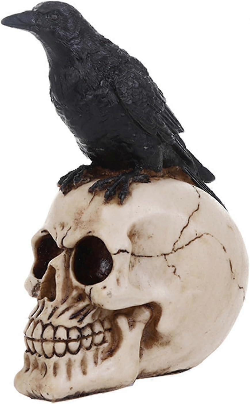 Dww-Human Skull Model Halloween Skull Crow Ornament Crow Perched on Skull Figurine Resin Crow Skeleton Skull Statue Halloween Decorations