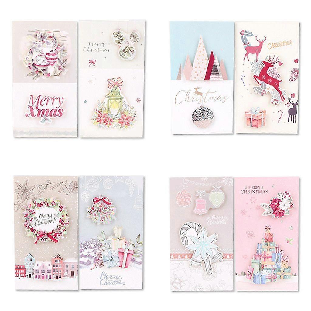 8pcs 3D Christmas Greeting Card Wreath Decorative Half-Fold Postcards Xmas Cards for New Year Birthday Holiday