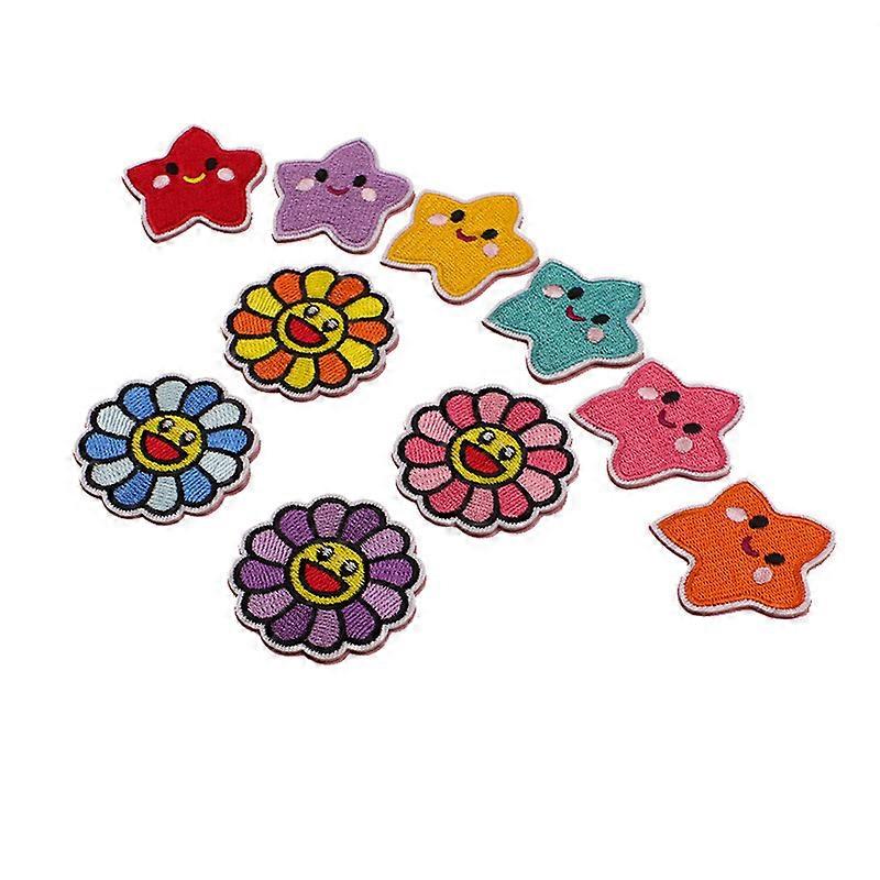 Dww-10 Pieces Star Embroidery Iron-on Patch, Self-Adhesive Embroidery Patches, Sew-on Appliques for Clothes, Backpacks, Jeans, Hats, Repair and Decora
