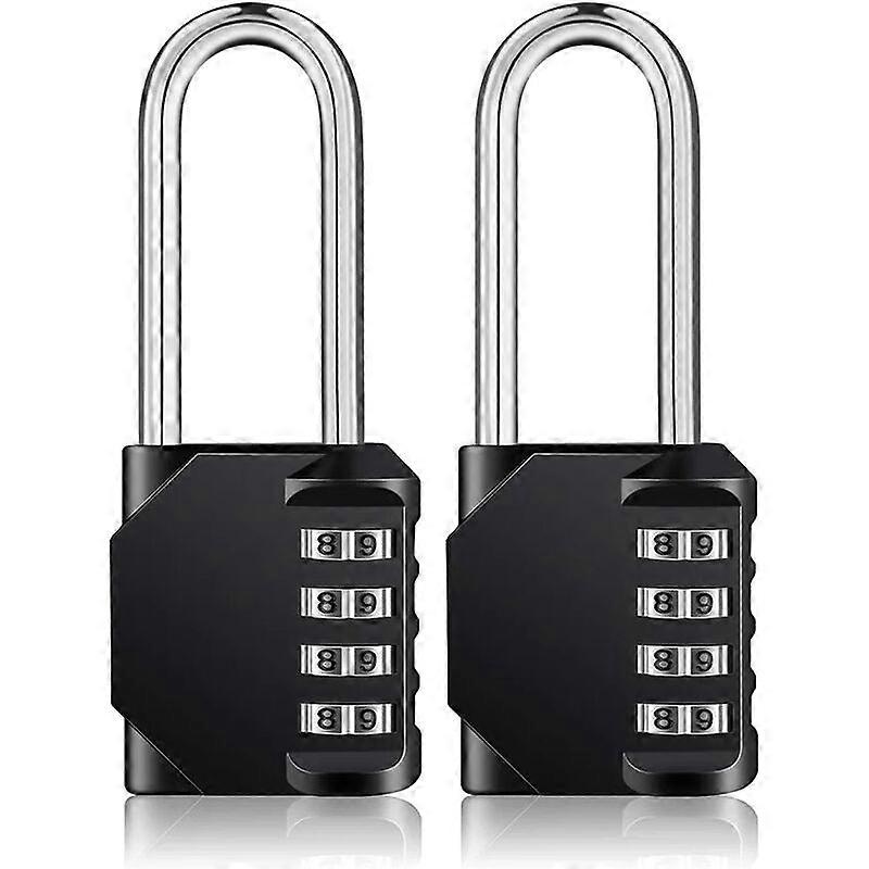 DWW-2 Pieces Black Long Combination Padlock for Outdoor Use, for Gates, Garden Sheds, 4-Digit Combination Padlock with Long Shackle