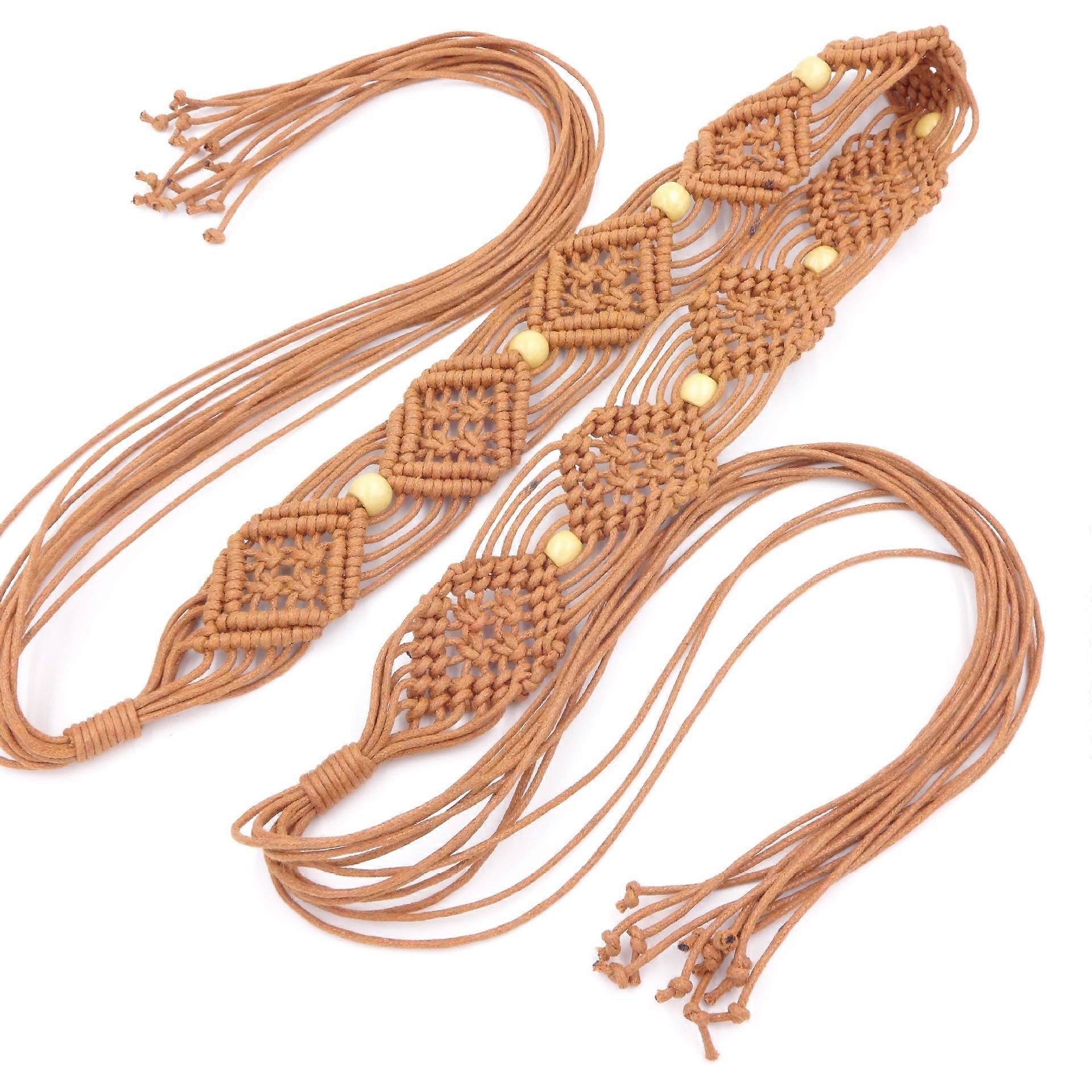Dww-Brown - Rustic Flavor Bohemian Ethnic Waxed Rope Woven Flower Women's Belt Waist Chain