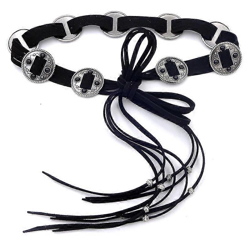 Dww-Black Vintage Ethnic Windblown Sweat Belt Bohemian Black Belt Slim Belt