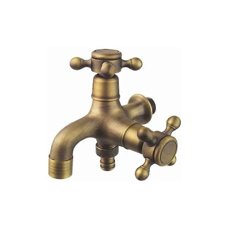 Dww-Double Drain Antique Style Garden Tap Double Ball Garden Tap Garden Pole Tap 1/2" Brass Washer Tap