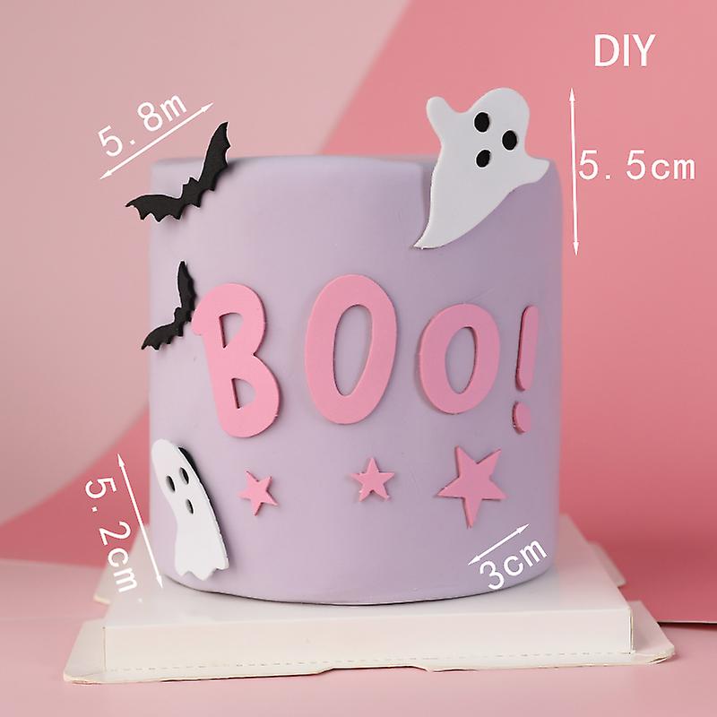 Cake Topper Halloween Theme Cupcake Pink Ghost Series Cartoon Cute Halloween Dessert Pottery Cards For Party Cake Decoration