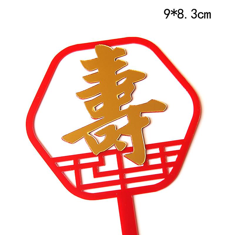 Chinees Longevity Acrylic Cake Topper Red Happy Birthday Cake Toppers For People Birthday Party Cake Decorations Celebrate Gift