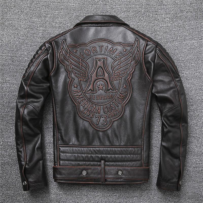 New Ooblique Zipper Vintage Brown Style Genuine Eather Jacket Men's Re
