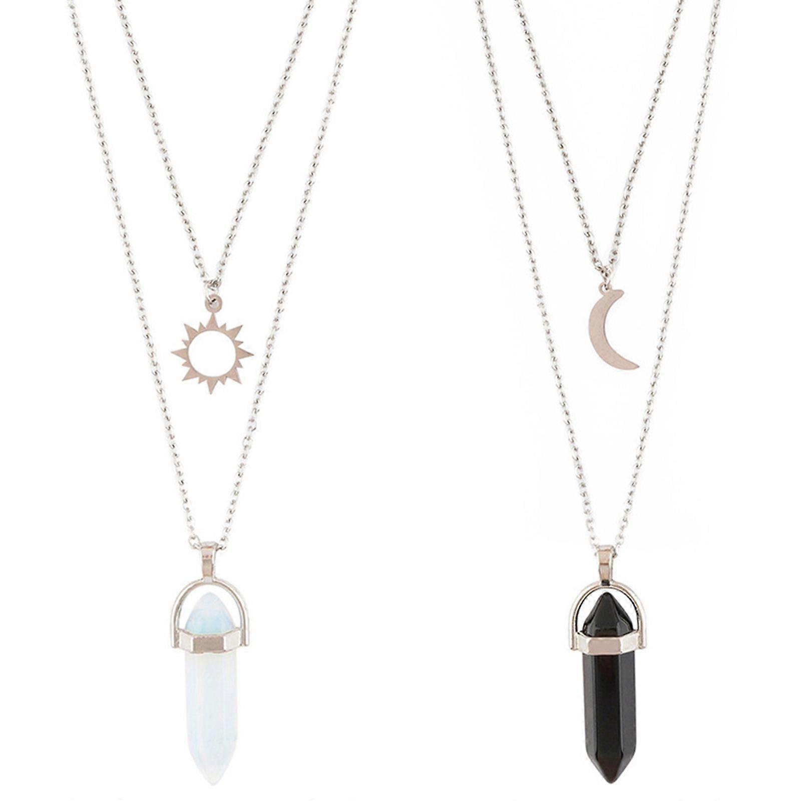 2x Crystal Pendant for Sun and Moon Charm Best Friends Jewelry Bullet Stone Neck