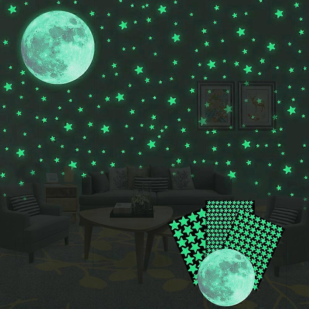 Luminous Wall Decals Ceiling Stickers Glow in The Dark Moon and Stars Starry Sky Shining Decals Room Decoration Perfect Gifts for Kids Bedroom Bedding