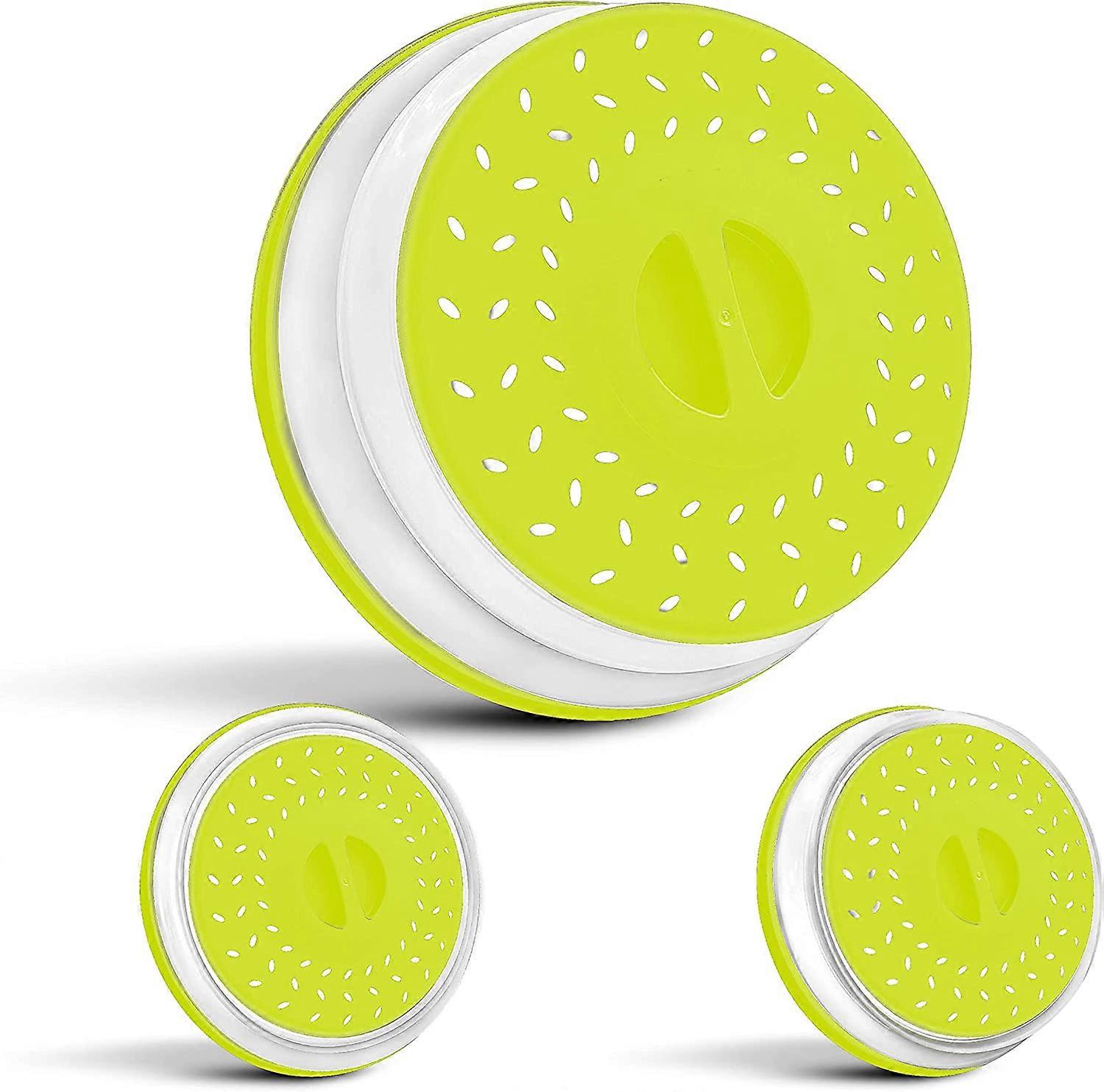 Dww - 3-Piece Collapsible Microwave Lid Set - Green - Retractable Silicone Lid and Steamer for Microwave-Safe Plates and Bowls - Food Strainer for Was