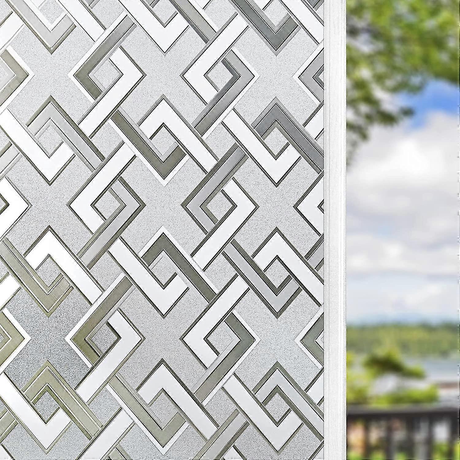 Dww- 45x200CM Square Pattern Window Film, UV Protection Privacy Screen, Non-Adhesive Electrostatic Window Film, Decorative Window Film for Home Office