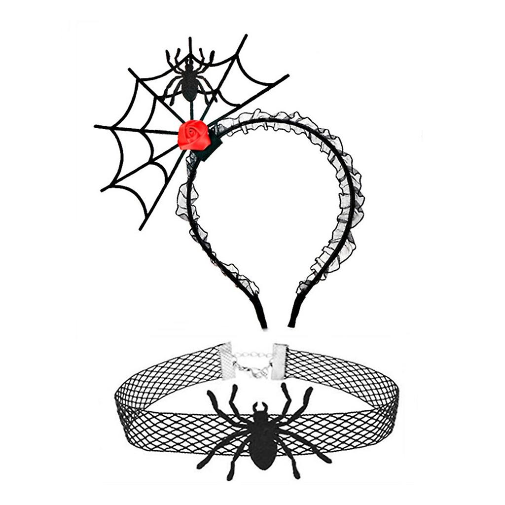 Gothic Style Spiderweb Headband and Lace Choker Halloween Cosplay for Women