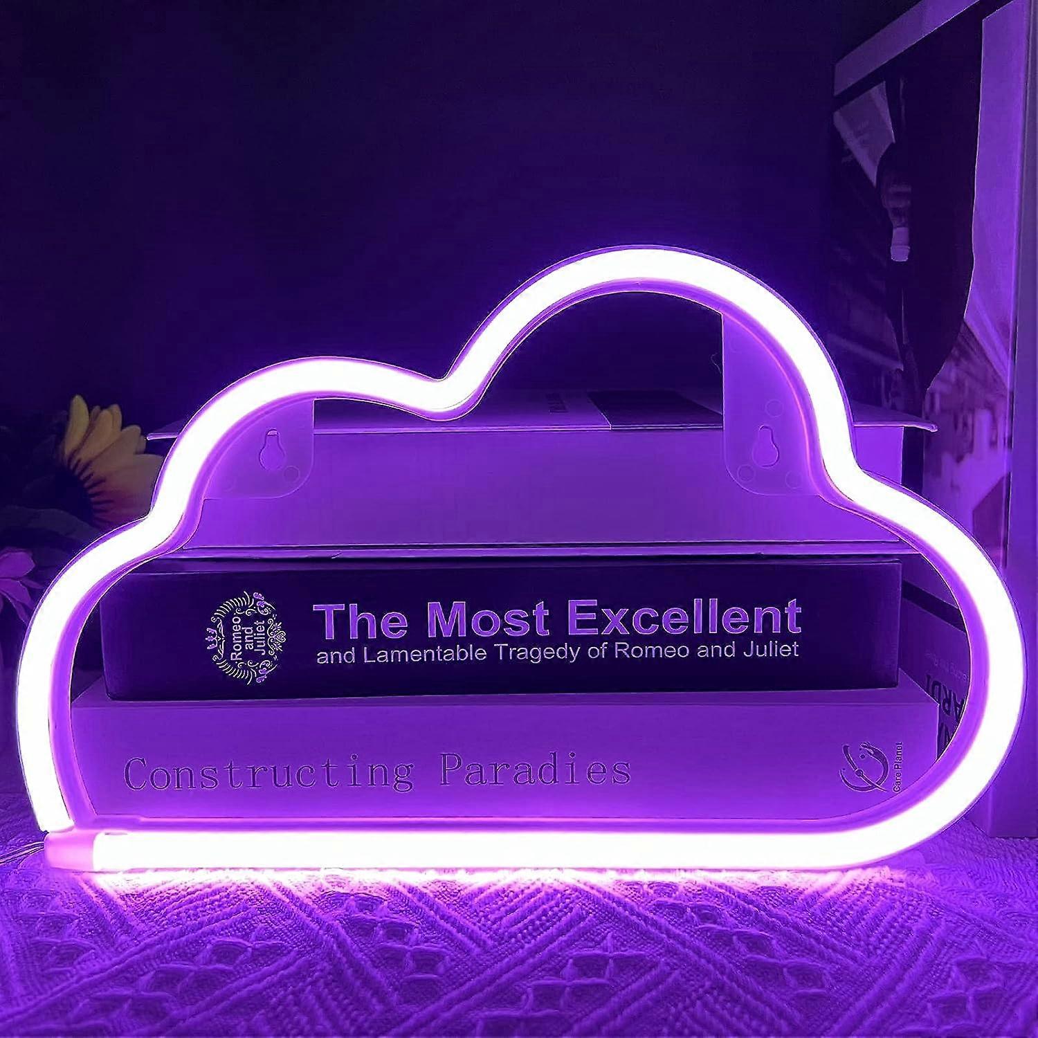 Cloud Neon Signs,Battery or USB Powered Sign Shaped Decoration Lights Bedroom Aesthetic Teen Girl Kid Room Christmas Birthday-Purple