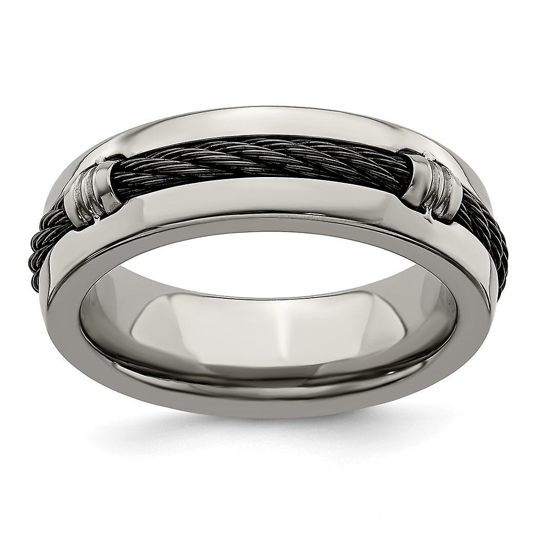 Titanium and Cable Polished 7mm Band Size 6.5 Ring for Women and Men - 5.7 Grams