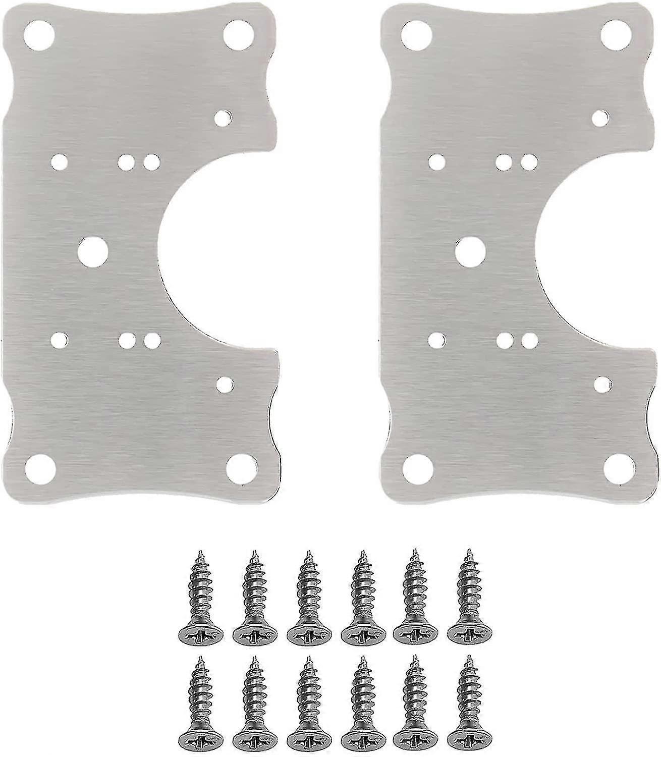material steelEffective problem solvingWhether your kitchen work cabinet is corroded by moisture, frequent switching, or the quality of its own materials, etc., the hinges cannot be firmly fixed, tripping and other problems. Our hinge repair boards can easily solve these problems, covering the original damaged area and making it look betterEasy to InstallFlat connection plate design is smooth and easy to install; The package comes with stainless steel screws, just use a screwdriver or electric drill to hold the brackets together and then fix. With several rows of screw holes, different hinges are available.[Beautiful and neat] The countersunk hole design, the screw head will not protrude after installation, the surface is flat, and the original ground damage area is covered, which is beautiful.High Quality MaterialMade of high quality stainless steel, strong practicability and long service life. Fix the hinged stainless steel door panels together, and then convert the original fixed point of force into a force-bearing surface, which is more firm.Universal UsesOur stainless steel hinge repair panels are versatile and connect flat surfaces, so they can be used to build frames, and can also be used to repair a variety of furniture hinges. Perfect for fixing wooden sofas, wooden tables, chairs, wooden beds, drawers, windows and kitchen lockers.