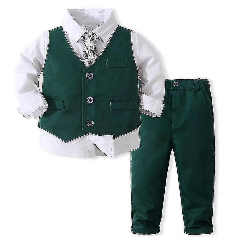 Kid Solid Color Dress Shirt+vest+pant+tie Set Elastic Waist compatiblemal Dressy Outfit Lapel Neck Gentleman Suit