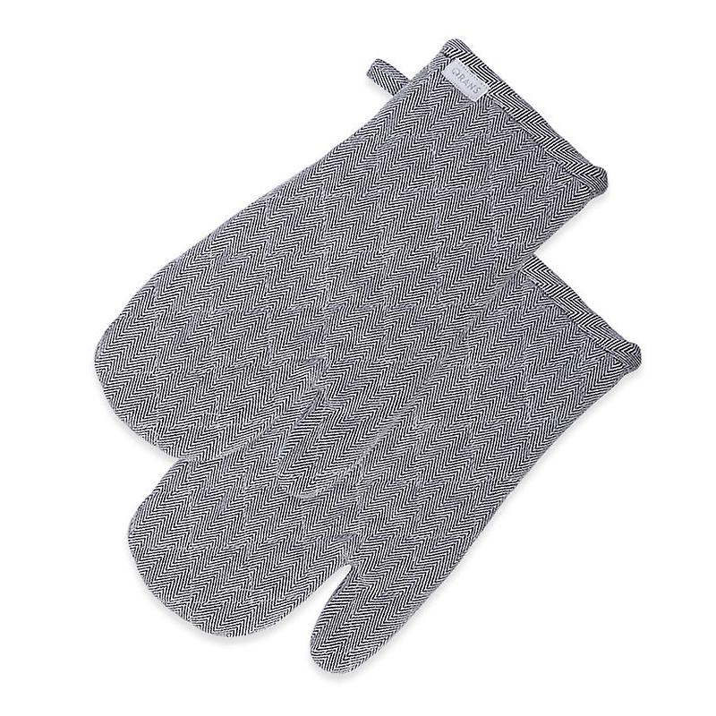 Rans Herringbone Black Cotton Set Of 2 Oven Gloves Oven Mitts & Potholders