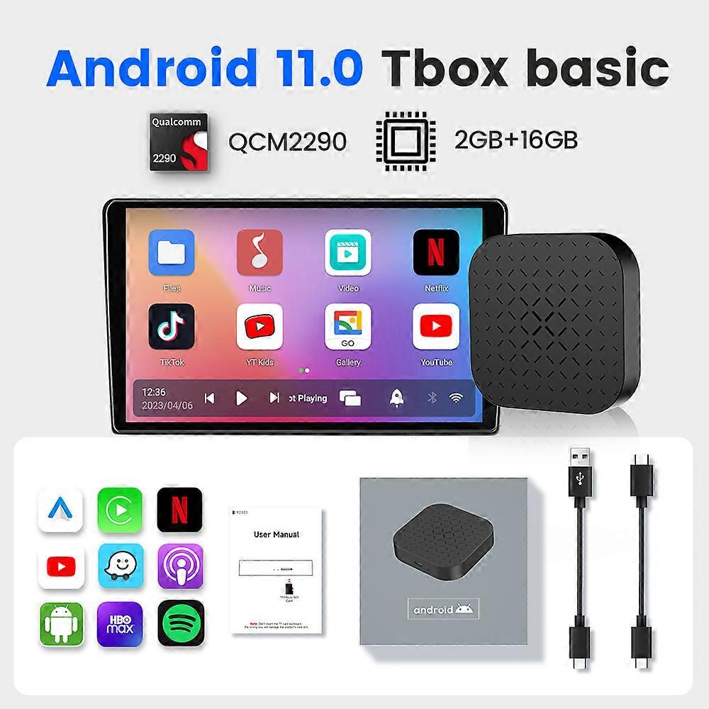 NOTE:Applicable Car models:Car with factory OEM wired CarPlayIPhone :iPhone 6 and above, iOS 10 and above versionAndroid phone : Android 11.0 and aboveProduct ParameterBrand: CarlinKitModel: AI Box-BasicSystemAndroid 11.0CPUQualcomms QCM2290 ARM Cortex-A53 Quad-Core 64-bit CPU, up to 2.0GHz 11nm proceGPUAdreno 702Memory2GB (RAM) + 16GB (ROM)Built-in APK: Play Stotre, YouTube, Netflix, Disney+, TikTokConnection method: WifiBluetooth AI Box Basic Android 11.0 Wirele Carplay/Android auto New interface designNew UI style fine deatail design 3 IN 1 Switch system at any time Qualcomm Snapdragon QCM2290CarlinKit insist on choosing Qualcomm Snapdragon chips, only to provide customers with a better experience Eentials for long journeys 2 Ways to watch movies and videos Fast thermal designProduct box withe many honeycomb holes, No need to worry about the heating of the box Plug and Play Easy to connectPlug the product into your car's USB port and connect to your mobile phone hotspot or router network About built-in Play storeYou can turn on the "Allow installation of third-party app" switch to install the app from the Play Store Original Car functionTouch Screen, Steering wheel, know control, Voice control Dual Bluetooth Functions Global Language Support Conditions of useFor 98%Car with factory OEM Wired CarPlay OTA Support