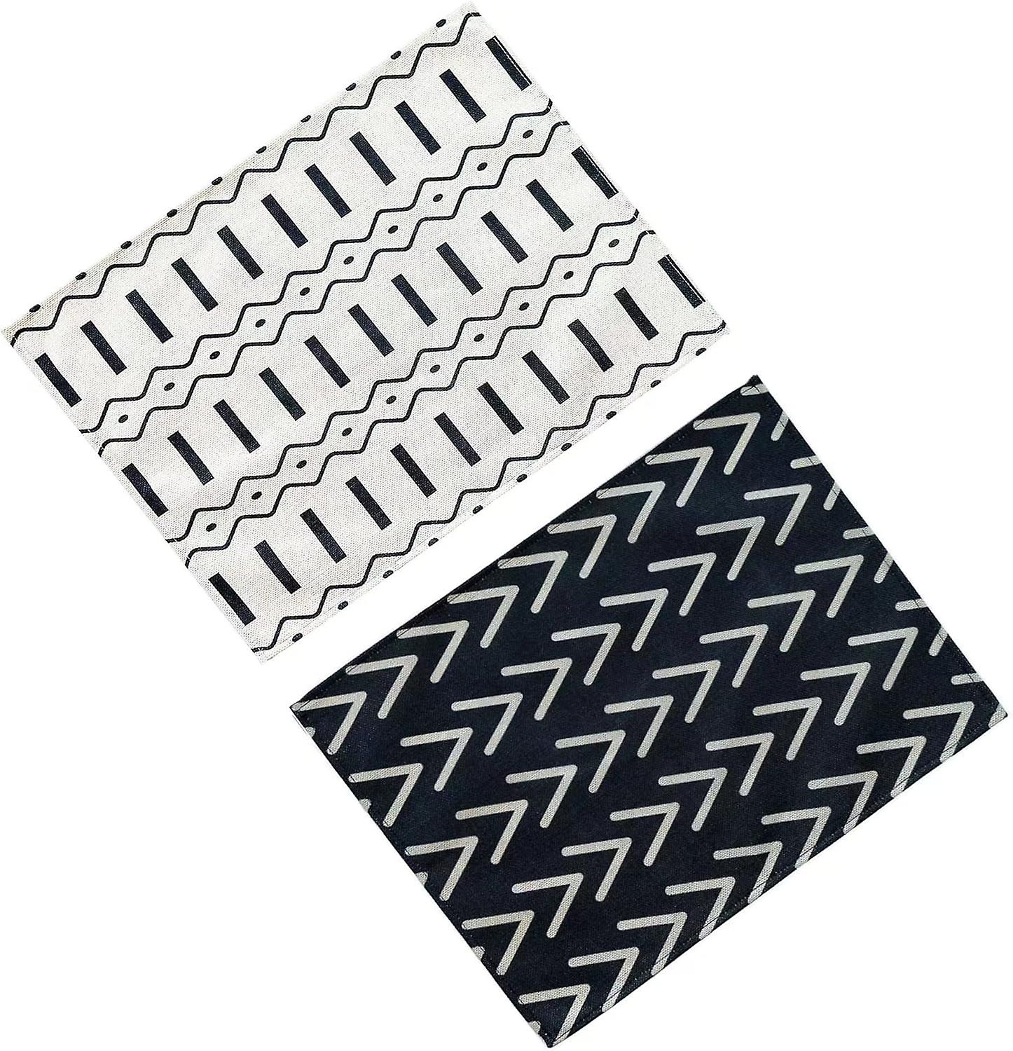 2pcs Black And White Theme Linen Placemat - Non-slip Heat-resistant Washable Placemat For The Kitchen