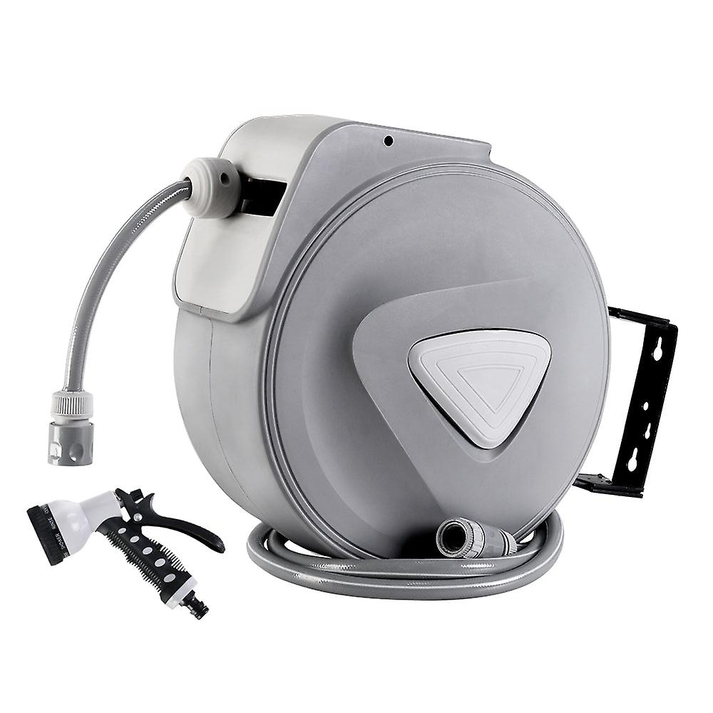 HOD HEALTH AND HOME Australia has been operating online and instore for 8 years. All products come with a 1 year warranty, fast shipping and special offers added to our site daily.. Tired of manual unwinding and rewinding your hose reel? Or tangles and kinks with the hose because you cana™t unwind and rewind it properly? Or perhaps your long hose is just an unsightly mess in your garden? Well those days are history with our Retractable Hose Reel. Looking compact and sturdy in a cool grey finish our 30m Retractable Hose Reel is designed to be wall mounted so that you can use the hose without any encumbrances. The entire assembly can also be swivelled 180A° for maximum reach. Both the polypropylene housing and PVC hose are UV-resistant to suit Australian climatic conditions which can be quite harsh during summers. Besides the hassle-free unwind and rewind youa™ll also love the incremental locking system that locks off the desired length that you are using. And when the sprayinga™s done just give the hose a firm tug for automatic rewinding. The internal guiding system will ensure that no tangles or kinks occur in the process of rewinding or unwinding for next use. Included in the assembly is a spray gun that has nine nozzle action ranging from fine mist to full-on jet blast. With the Retractable Hose Reel watering the garden washing the car or showering the pet is now reel-ly easy and convenient. Get yours today. Features Integrated hose storage solution Incrementally locking Auto rewind system UV resistant materials 180A° swivel wall mount PVC hose Built-in handle Rubber stopper One spray gun Slow rewind function Specification